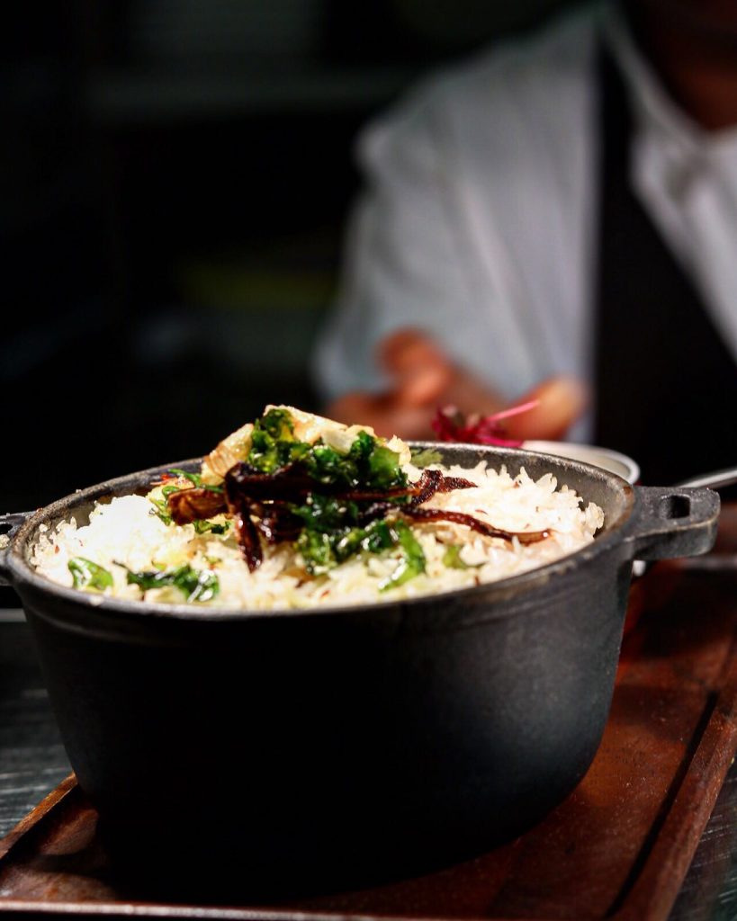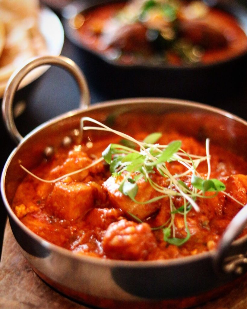 Having arrived at our seats, the service from the beginning was attentive, carefully orchestrated and effortless in dealing with each of our questions. We were given menus, a selection of drinks and a stand out pickle tray (which included a fantastic Yorkshire rhubarb) and poppadoms. From Mausmi Ghota (crisp bread with ginger and seasonal vegetables) to Sabzi Shami, a mixed vegetable and lentil kebab, we were simply spoilt for choice. For starters, we settled with a Lasaan Paneer Tikka and a Khanda Bhaji. It needs to be said here that head chef Minal has worked hard with suppliers to bring the very best in locally sourced produce. Her efforts have paid off spectacularly in the utter delight her food brings to the palate. The Khanda Bhaji for example was light and delicate, it didn’t have that heavy feeling some bhajis leave behind. This meant full attention was given to the subtle flavours and mix of spice which are much loved in Indian food.